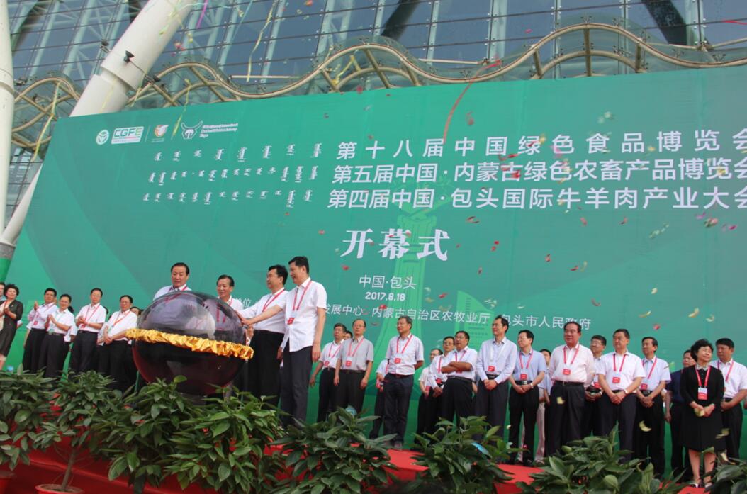 盛夏時(shí)節(jié)的包頭風(fēng)輕云淡,818日,第十八屆中國綠色食品博覽會(huì)、第五屆中國·內(nèi)蒙古綠色農(nóng)畜產(chǎn)品博覽會(huì)、第四屆中國·包頭國際牛羊肉產(chǎn)業(yè)大會(huì)在內(nèi)蒙古包頭市國際會(huì)展中心拉開帷幕。農(nóng)業(yè)部原副部長、中國綠色食品協(xié)會(huì)會(huì)長陳曉華,農(nóng)業(yè)部總畜牧師馬愛國,自治區(qū)黨委常委、包頭市委書記張?jiān)褐遥瑑?nèi)蒙古自治區(qū)人民政府副主席白向群,內(nèi)蒙古自治區(qū)農(nóng)牧業(yè)廳廳長郭健等出席開幕式。