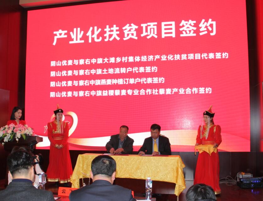 會議期間,內蒙古陰山優(yōu)麥食品有限公司還分別與察右中旗大灘鄉(xiāng)集體經濟產業(yè)化扶貧項目代表、察右中旗土地流轉戶代表、察右中旗燕麥種植訂單戶代表和察右中旗易稷藜麥專業(yè)合作社進行了現(xiàn)場簽約。
