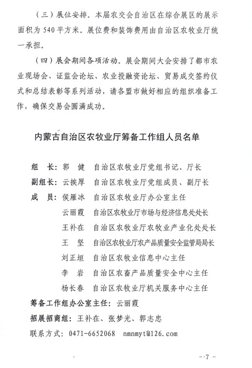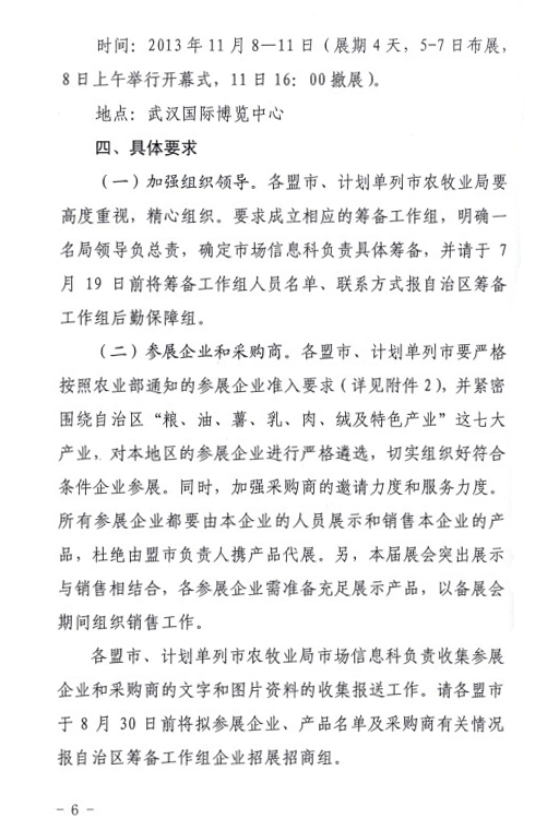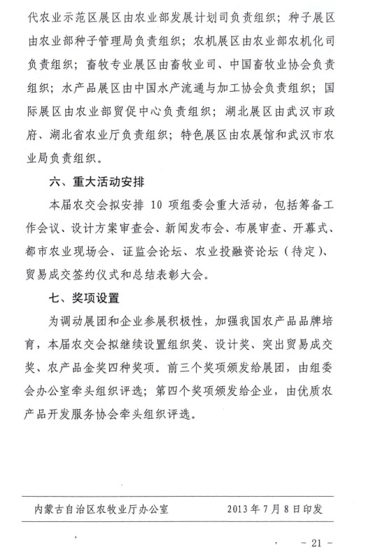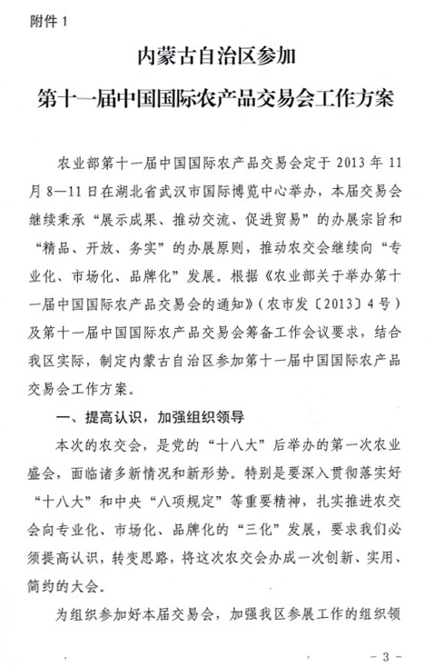 關于印發(fā)內蒙古自治區(qū)參加第十一屆中國國際農產品交易會工作方案的通知