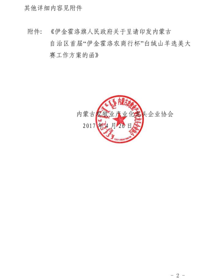 伊政函【2017】64號(hào)關(guān)于呈請(qǐng)印發(fā)內(nèi)蒙古自治區(qū)首屆“伊金霍洛農(nóng)商行杯”白絨山羊選美大賽工作方案的函