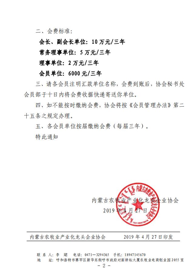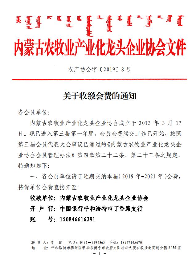 農(nóng)產(chǎn)協(xié)會(huì)字[2019]8號(hào) 關(guān)于收繳會(huì)費(fèi)的通知