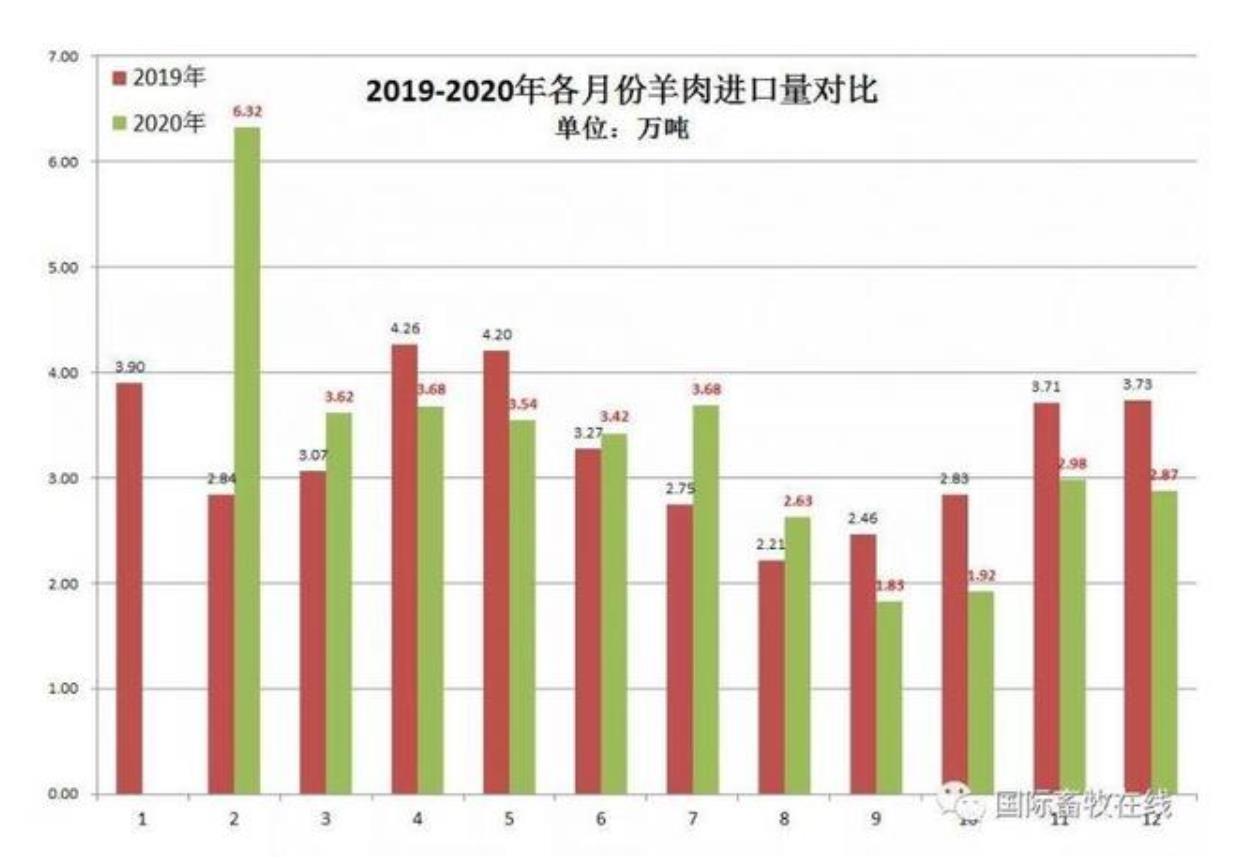 備注:20202月份數(shù)值為1-2月累計(jì)數(shù)據(jù),圖表來(lái)源于國(guó)際畜牧在線)