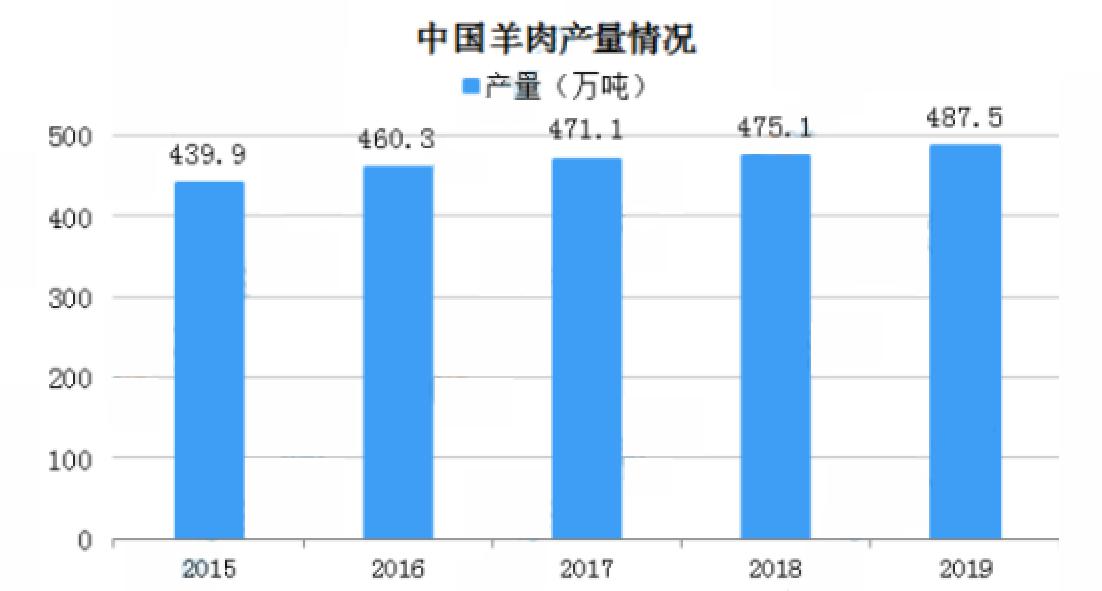 2019年內(nèi)蒙古羊肉產(chǎn)量位居第一達(dá)到109.8萬(wàn)噸,新疆、山東排名第二和第三,產(chǎn)量分別為60.3萬(wàn)噸、36.9萬(wàn)噸,此外,河北、河南、四川、甘肅、云南羊肉產(chǎn)量超20萬(wàn)噸。2015年全國(guó)羊肉產(chǎn)量439.9萬(wàn)噸,2019年增至487.5萬(wàn)噸,同比增長(zhǎng)2.6%。